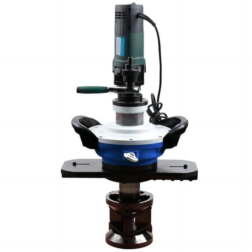 拉紧拉力螺母,使心轴块沿斜坡向上膨胀并抵住 ID 表面,以便正向安装、自定心并与孔成直角。当工具钻头从末端送入材料中时,会产生一个斜面,该斜面与钻头磨入的角度预定的角度一致。钻头几乎适用于任何材料或所需的斜面角度,并且可以为任何形式的工具操作定制钻头。