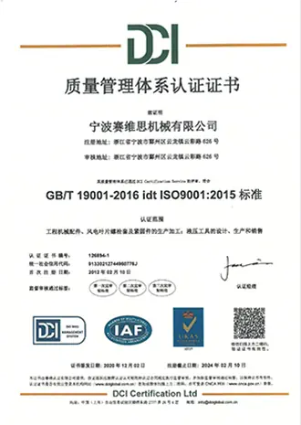 赛维思建立并拥有完善的质量管理体系,已通过TS16949,ISO9001质量管理体系,ISO14000环境管理体系,OHSAS18001安全管理体系与CE认证,赢得了国内外液压工具和风电叶片主机厂商的青睐,以优先的质量,提供专业的服务。